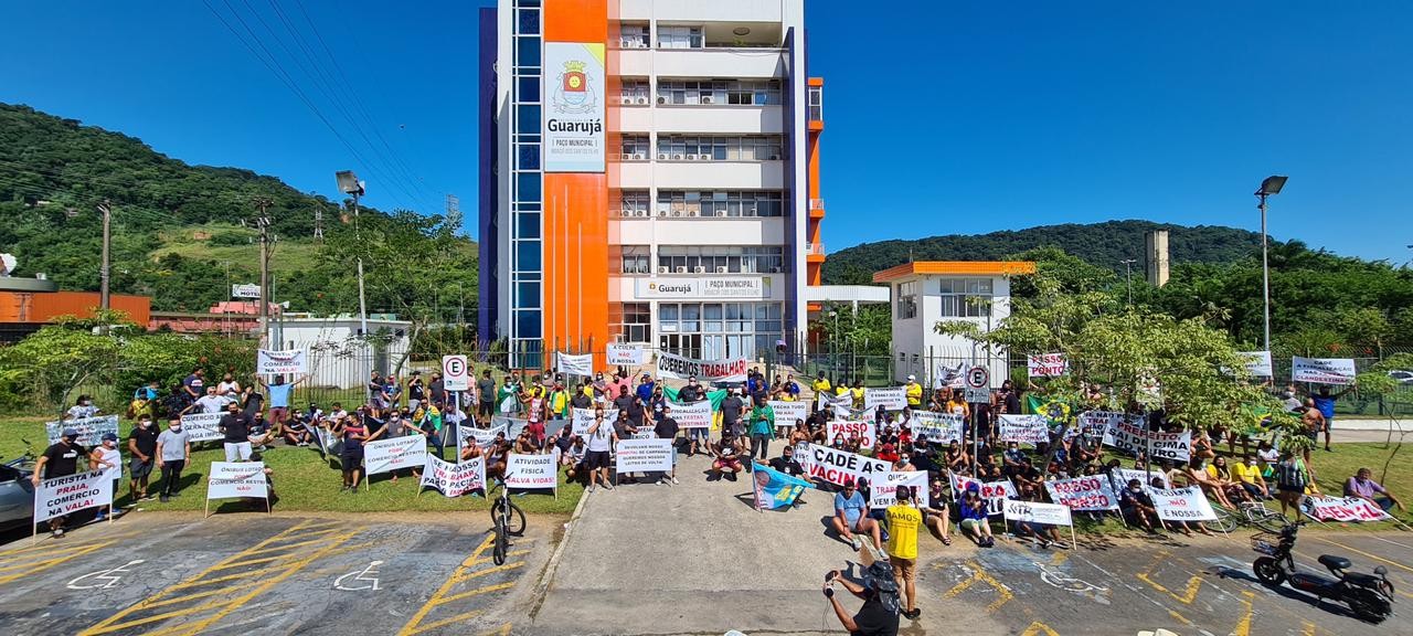Profissionais autônomos de Guarujá, Peruíbe, Praia Grande e São Vicente se reuniram para reivindicar abertura dos comércios após início da 'fase emergencial' do Plano São Paulo, nesta segunda-feira (15). Comerciantes de Guarujá se reuniram em frente ao Paço Municipal para pedir a reabertura dos comércios Arquivo Pessoal/Filipe Lemos Comerciantes e motoristas de aplicativo das cidades de Guarujá, Peruíbe, Praia Grande e São Vicente, no litoral de São Paulo, se reuniram nesta segunda-feira (15) para protestar contra o fechamento dos comércios. Após as medidas restritivas da ‘fase emergencial’ do Plano São Paulo entrarem em vigor, profissionais autônomos foram às ruas manifestar o descontentamento diante das restrições que devem permanecer até o dia 30 de março. A ‘fase emergencial’ suspende o funcionamento dos comércios não essenciais, como loja de roupas e restaurantes. Até o final do mês, estes estabelecimentos não poderão operar com serviço de retirada presencial, apenas delivery (24 horas), ou drive-thru (das 5 às 20h). As lojas de materiais para construção também devem ficar fechadas. Em Peruíbe, a concentração de comerciantes e motoristas de aplicativo aconteceu em frente à Prefeitura da Cidade. De acordo com Cleiton Alves de Oliveira, que é representante dos motoristas de aplicativo, os profissionais se uniram para reivindicar a abertura do comércio, pois a cidade não tem outro tipo de renda. “A realidade de Peruíbe não pode ser comparada com uma capital, nós dependemos do comércio, estamos tentando sobreviver. É o nosso último suspiro, é o que nos resta”, diz. Segundo o motorista, o comércio da cidade sustenta outros trabalhadores. “O único meio de sobreviver em Peruíbe é o comércio. Aqui é uma cadeia, um efeito dominó, eu sou motorista de aplicativo e dependo deles. Os comerciantes estão dispostos a seguir todos os protocolos com rigidez, como distanciamento, álcool em gel, limite de pessoas no estabelecimento. O comércio daqui é pequeno, aqui não tem como aglomerar”, explica. Em Peruíbe, comerciantes e motoristas de aplicativo se concentraram em frente à prefeitura Arquivo Pessoal/Cleiton Alves de Oliveira Os comerciantes de Guarujá se uniram no Paço Municipal e foram em direção ao Trevo Santa Rosa para pedir a reabertura dos comércios. Com placas escritas ‘Fora Doria’, ‘Se não posso trabalhar, não preciso pagar imposto’, ‘Prefeito sai de cima do muro’ e ‘Quer trabalhar? Vem pra rua!’, também pediram pela abertura do comércio. Ricardo Bitencurt, que é comerciante há 10 anos na cidade, comenta que a categoria pede por um posicionamento do governo. “Vão dar um incentivo fiscal, diminuir tributos, vão fazer alguma coisa pelos comerciantes? Nós não temos respostas, precisamos de respostas”, desabafa. Manifestantes pediram por reabertura do comércio nesta segunda-feira (15) Arquivo Pessoal/Filipe Lemos Na cidade de São Vicente, a concentração dos manifestantes iniciou na Avenida Nações Unidas, no bairro Vila Margarida, com destino para a Ponte do Mar Pequeno, planejada para finalizar na prefeitura da cidade. Motoristas de aplicativo pediram pela reabertura dos comércios para continuar trabalhando no município. Já em Praia Grande, os participantes se reuniram em frente à prefeitura para conversar com a chefe do executivo. Conforme apurado pela reportagem, os manifestantes se reuniram no prédio para cobrar a reclassificação da cidade nas fases do Plano São Paulo. Os comerciantes dizem que a reclassificação foi prometida pela prefeita em duas reuniões. Após ficarem sem respostas do poder público, o grupo seguiu em direção à entrada da cidade e bloqueou duas vias. A PM esteve no local e, em conversa com os manifestantes, conseguiu liberar o acesso. Prefeituras Em nota, a Prefeitura de Praia Grande informou que, por causa do protesto, a Avenida Ayrton Senna foi paralisada no início da tarde nos dois sentidos. As duas faixas da via foram liberadas após a chegada da equipe da Secretaria de Trânsito ao local. A administração ressaltou que segue tomando medidas para reduzir o impacto para os setores da economia local, que estão sendo afetados devido os desdobramentos da pandemia da Covid-19. Segundo a prefeitura, desde o início da pandemia, a cidade vêm adotando duas linhas de atuação: salvar o máximo de vidas possíveis e manter o funcionamento dos comércios. Com o aumento de casos e internações na cidade, o município afirma que se faz necessário atender a 'fase emergencial' do Plano São Paulo, com a liberação momentânea apenas do funcionamento de serviços essenciais. Guarujá afirma que segue estritamente as determinações do Plano São Paulo estipuladas pelo governo paulista para a fase emergencial. Já o município de Peruíbe informou que os protestos não causaram paralisação no trânsito, mas a manifestação resultou em aglomeração no local, porque não seguiu os protocolos sanitários da pandemia. O prefeito da cidade, Luiz Maurício, recebeu em seu gabinete uma comissão composta por três representantes da manifestação para ouvir as reivindicações. A cidade segue as restrições adotadas em todo o estado para frear a alta de mortes e sobrecarga em unidades de saúde. E São Vicente destacou que também segue as determinações do Plano São Paulo para essa fase emergencial e que estabeleceu algumas medidas de incentivo tributário por causa dos impactos da pandemia. VÍDEOS: G1 em 1 Minuto Santos