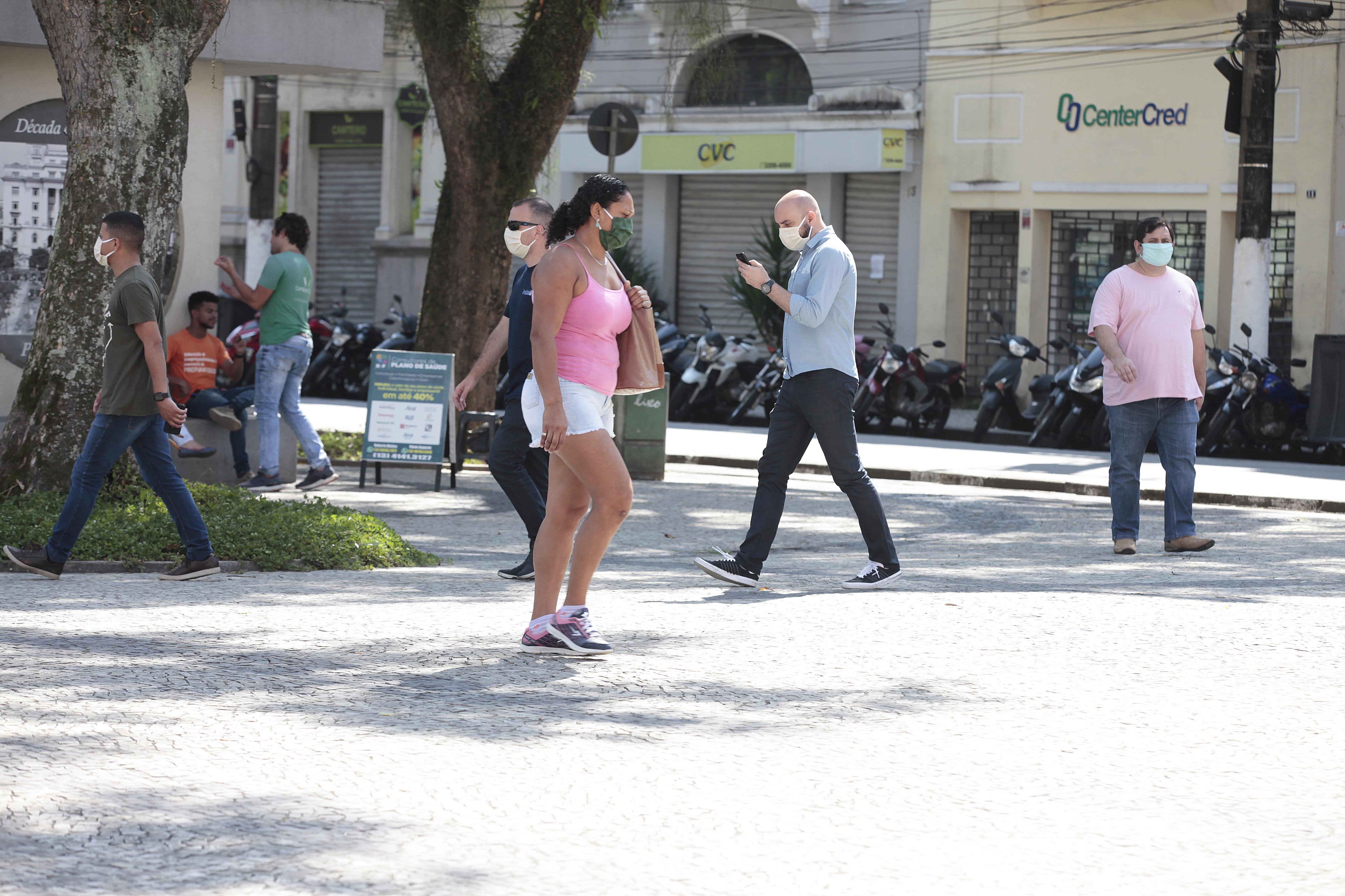 Escolas privadas serão fechadas por 15 dias. Multa para pessoas que não usarem máscaras em vias públicas triplicará de R$ 100 para R$ 300. Caso a pessoa seja flagrada sem máscara em locais com aglomeração, multa será de R$ 600. Pessoas usam máscaras no Centro de Santos (SP) Anderson Bianchi/Prefeitura de Santos O prefeito de Santos, Rogério Santos (PSDB), anunciou, por meio de transmissão ao vivo neste domingo (14), que publicará novo decreto determinando a suspensão das aulas presenciais na rede de ensino particular e em escolas profissionalizantes por 15 dias a partir da próxima terça-feira (16). Além disso, anunciou novas medidas de restrição, como o aumento do valor da multa para quem for flagrado não utilizando máscaras faciais nas vias públicas da cidade durante a pandemia. Sobre as escolas, assim como o Governo de São Paulo já havia determinado a suspensão das aulas presenciais em todo a rede estadual, o município também já havia anunciado, anteriormente, que as unidades municipais serão fechadas a partir de segunda-feira (15), voltando ao sistema remoto de ensino. Agora, a administração municipal determinou que também haverá o fechamento das escolas da rede privada. "A partir de terça-feira também fecharei por 15 dias as escolas particulares, é uma questão de igualdade, de deslocamento e coerência, eu sei que é difícil, vou conversar com os estabelecimentos, com os seguimentos representativos, mas é importante nesse momento", disse o prefeito. Multa Segundo o chefe do Executivo municipal, para endurecer as medidas de prevenção à Covid-19, a multa para quem for flagrado não utilizando máscaras faciais nas vias públicas da cidade passará de R$ 100 para R$ 300. Porém, para pessoas que forem flagradas não utilizando máscaras em locais com aglomeração, o valor da multa será ainda mais alto, no total de R$ 600. "O que mais podemos desejar para o outro é saúde, o momento é gravíssimo. Hoje estamos com 232 pessoas internadas em UTI, o vírus se prolifera muito mais rápido, o nível de contágio é maior", destacou Rogério Santos. Medidas mais restritivas Além do fechamento das escolas particulares e do aumento no valor da multa, o prefeito de Santos afirmou que outras medidas mais restritivas passam a valer no município nesta próxima semana. Veja abaixo quais são elas: Suspensão de atividade em lojas de conveniência nos postos de combustíveis; Maior fiscalização nos ônibus coletivos; Fechamento dos equipamentos públicos em praças; Suspensão das atividades físicas em estabelecimentos e clubes; Isolamento dos parques infantis públicos; Fiscalização das feiras livres; Redução de atendimentos médicos não-emergenciais. VÍDEOS: G1 em 1 Minuto Santos